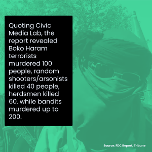 Our data of the week focuses on the recent report Financial Derivatives Company (FDC) on the number of lives lost in the first quarter of the year due to insecurity.