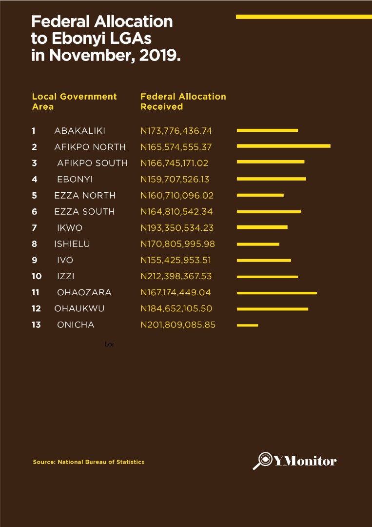 Infographics: Federal Allocation to Ebonyi state LGAs for November, 2019