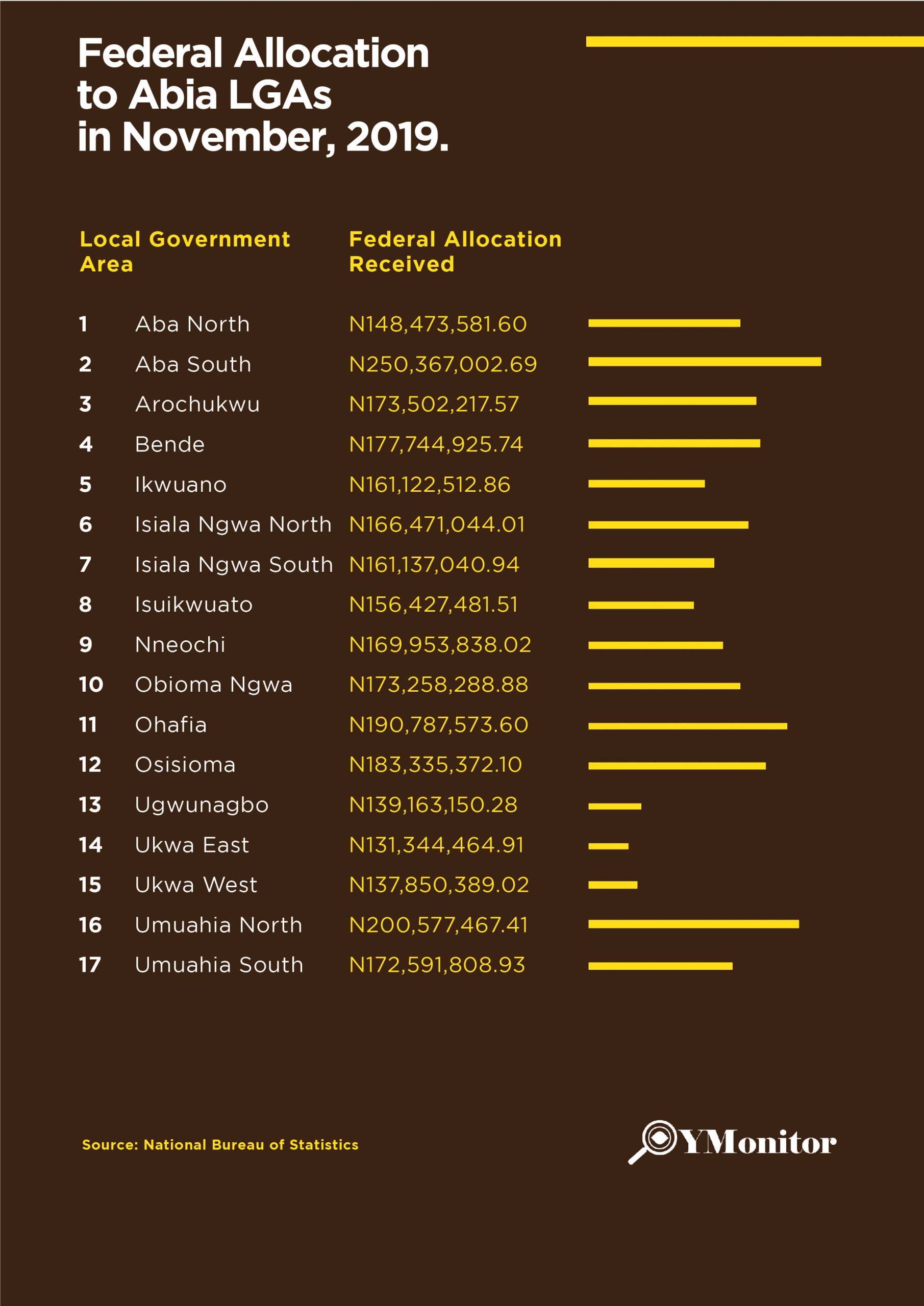 Infographics: See Federal Allocation to Abia LGAs for November, 2019