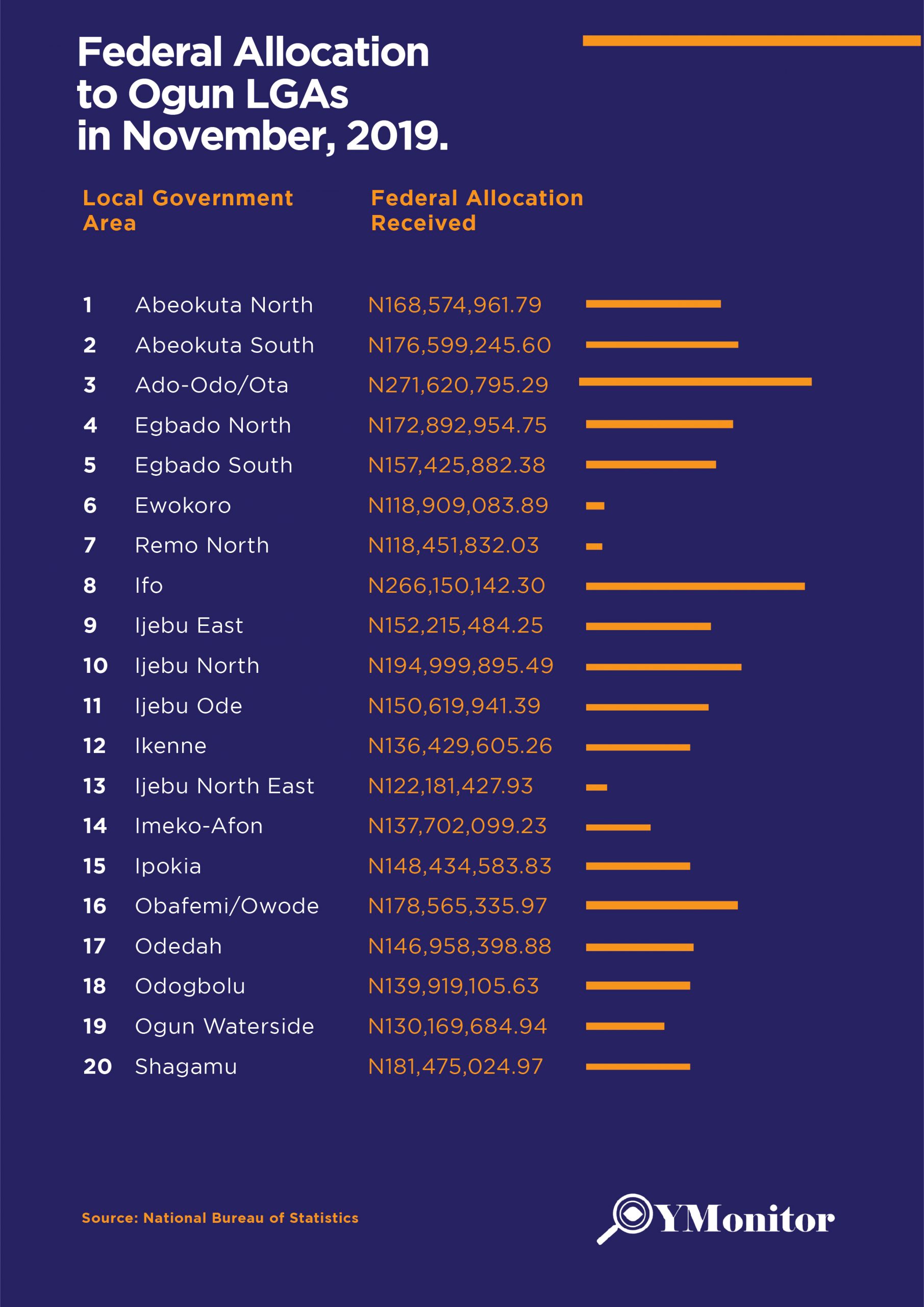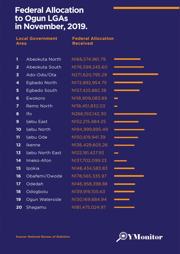 S/N Local Government Area Federal Allocation Received 1 Abeokuta North N168,574,961.79 2 Abeokuta South N176,599,245.60 3 Ado-Odo/Ota N271,620,795.29 4 Egbado North N172,892,954.75 5 Egbado South […]
