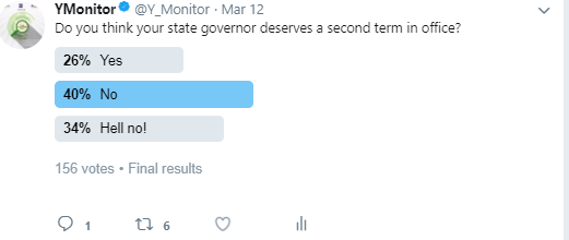 by Ajadi Daniel The generality of those that participated in the YMonitor online poll believed that their state governors does not deserve another term in office. […]