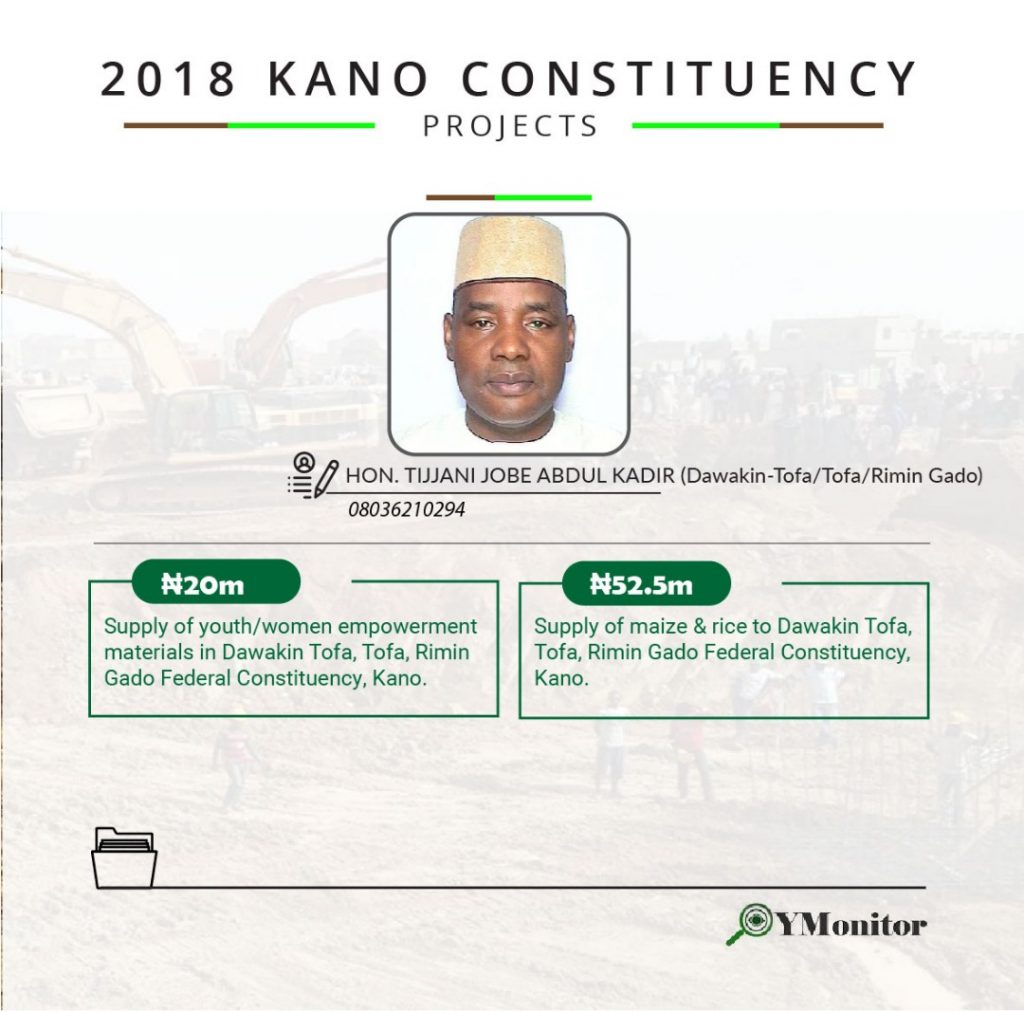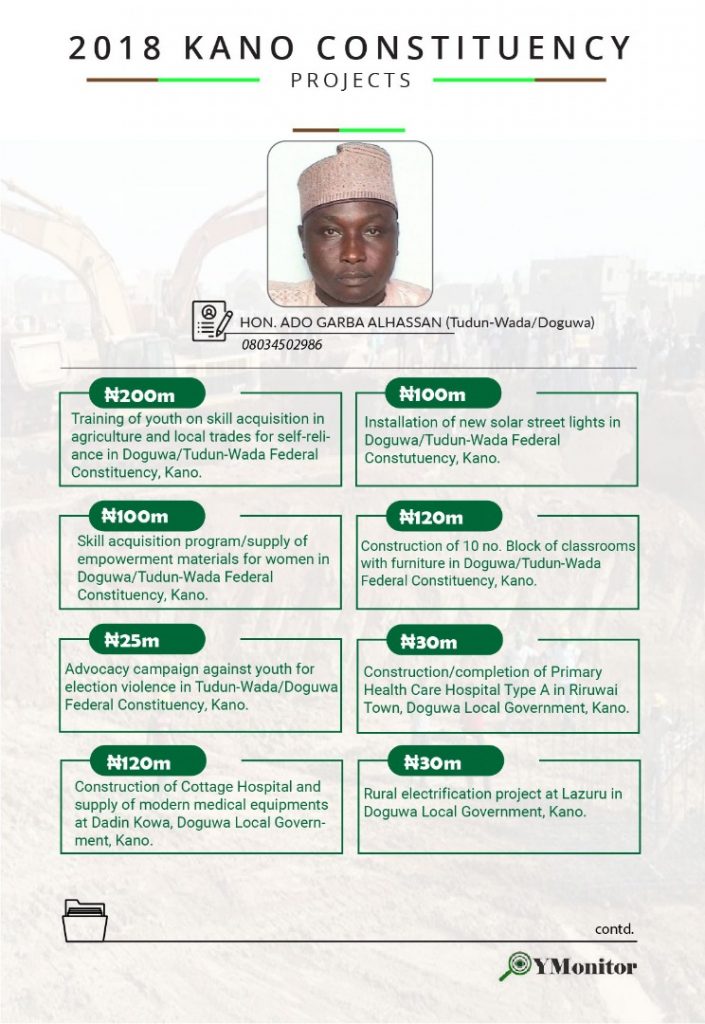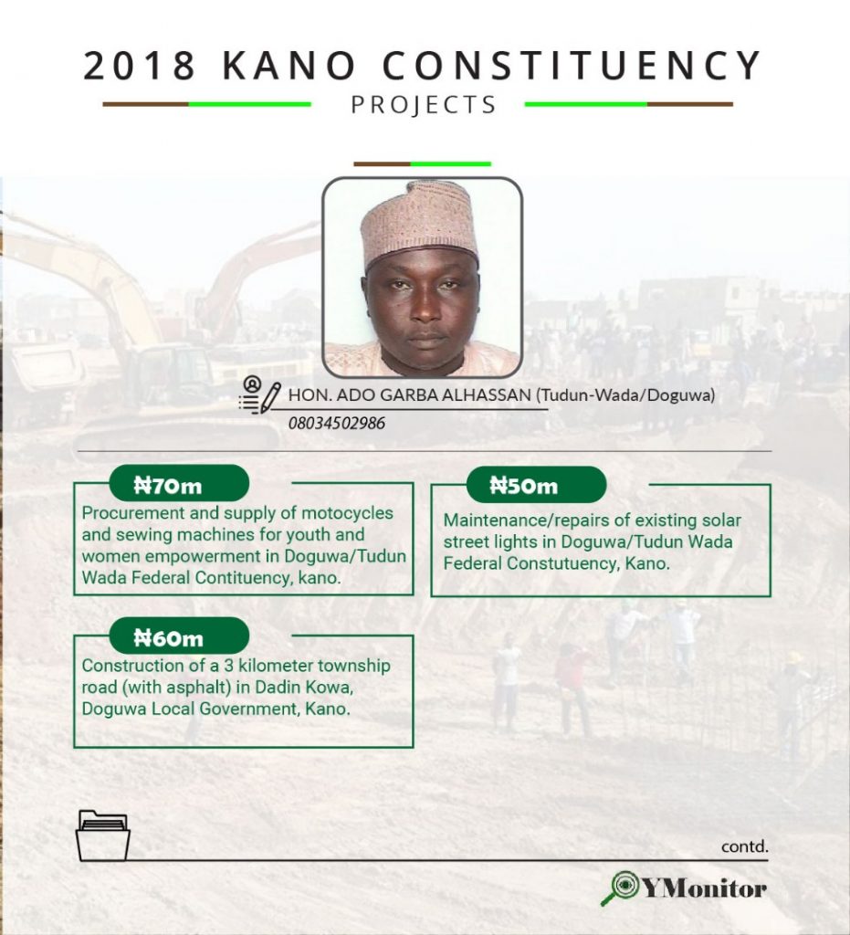 Below are the constituency projects of Kano state representatives in the National Assembly.
