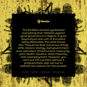 More than a week into the #EndSARsmovement. The Youths are on the streets because their concerns haven’t been met! “People want to be heard”.