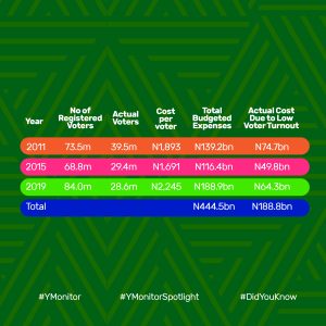 An analysis of the number of people who registered and those who actually voted in the last three general elections showed low voter turnout has cost Nigeria over N255 billion.