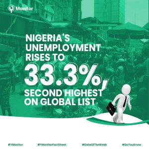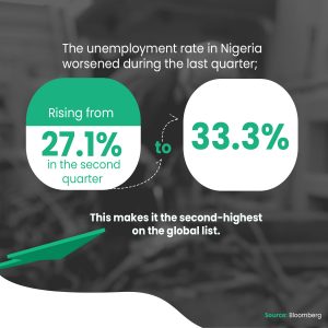 With the recent report, Nigeria now has a 33.3% unemployment rate according to NBS, while the country makes second on a global list by Bloomberg.