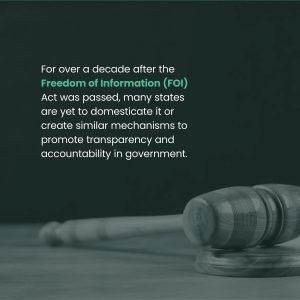 For over a decade since the Freedom of Information (FOI) was passed into law in Nigeria, no fewer than 16 states are yet to domesticate it or create similar and parallel mechanisms that serve to promote transparency and accountability in government.