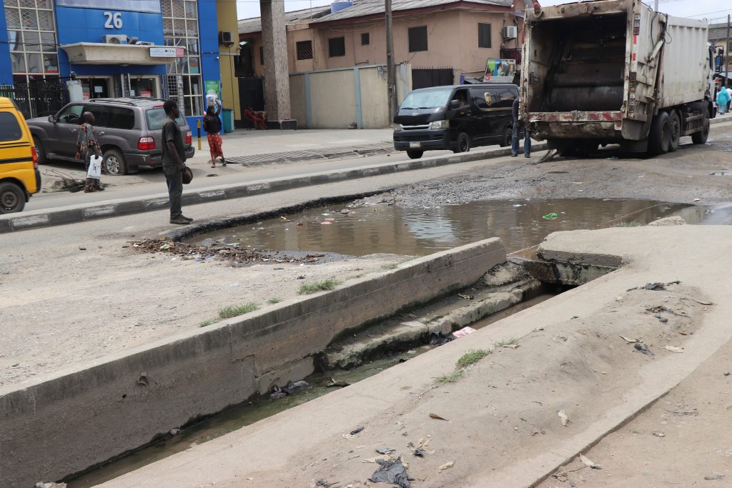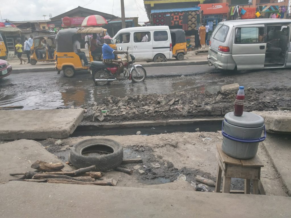 Lawanson road has been in this state of disrepair for more than a year. The local government has on different occasion desilted the drainage, but this has not helped to ameliorate the situation since several part of the road has been washed off.